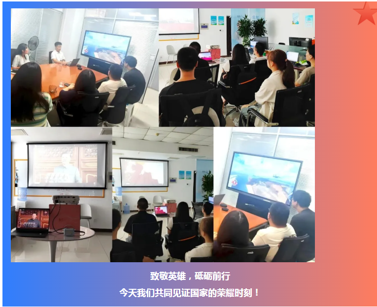 此次集体观看阅兵,既是一次深刻的历史教育,也是一次生动的团队建设。让我们在同一面国旗下,同一片屏幕前共同感受国家的强盛与民族的复兴,以实际行动表达对祖国的热爱与敬意。